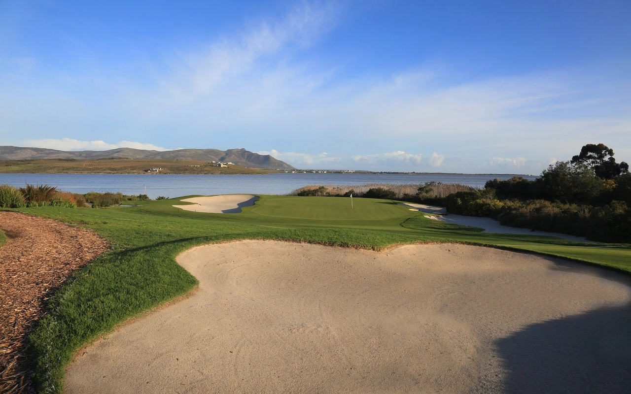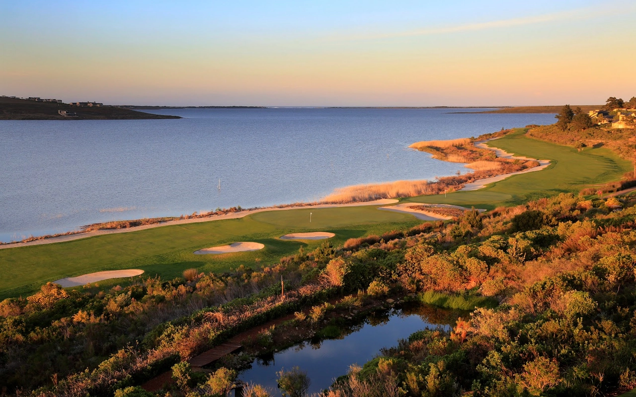 Arabella Golf Club is set dramatically on the edge of Bot River Lagoon. This wetland is home to thousands of waterfowl, so keep your eyes peeled for the Blue Crane… this beautiful bird is even the Arabella club emblem. The prolific architect Peter Matkovich laid out Arabella on what was originally stony farmland. There was plenty of clearing to be done, “ you could not even walk next to the lagoon,” said Matko. So, in 1998 after a fair amount of earth moving and felling of invasive trees, Arabella opened for play to a rapturous standing ovation.